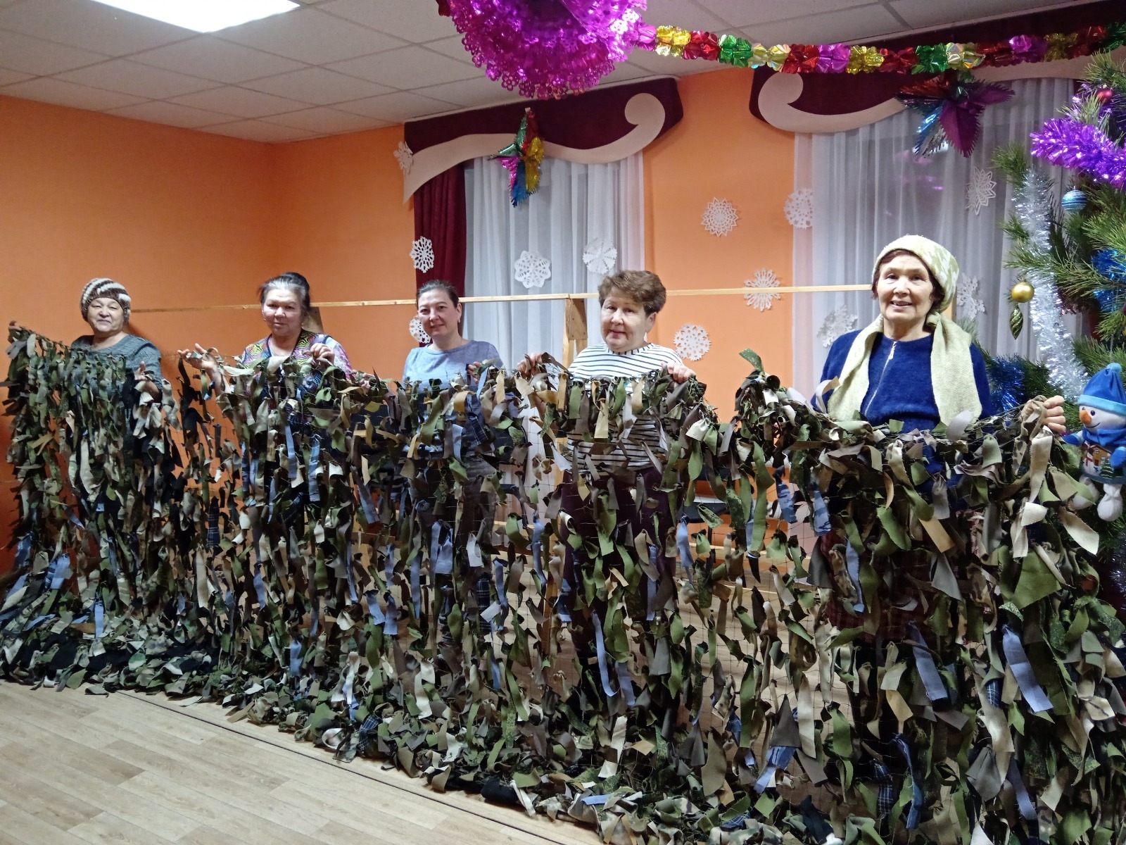 В помещении сельского дома культуры женщины ежедневно собираются для ответственного дела – плетения маскировочных сетей, которые затем отправляются на передовую для военнослужащих, участвующих в специальной военной операции.