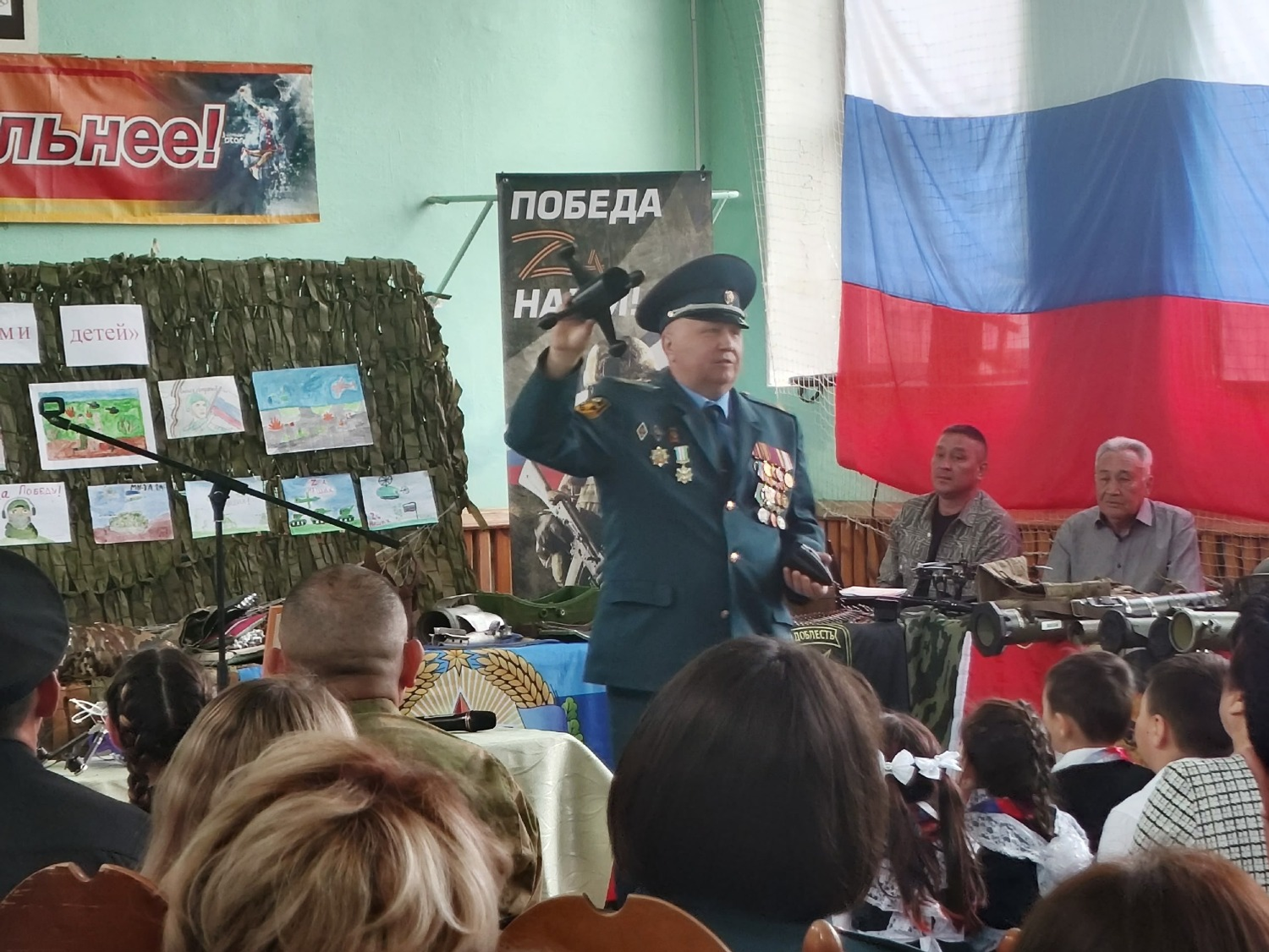 На мероприятие собрались волонтёры, ветераны СВО, представители военно-патриотических общественных организаций, ученики и педагоги школы, неравнодушные жители.