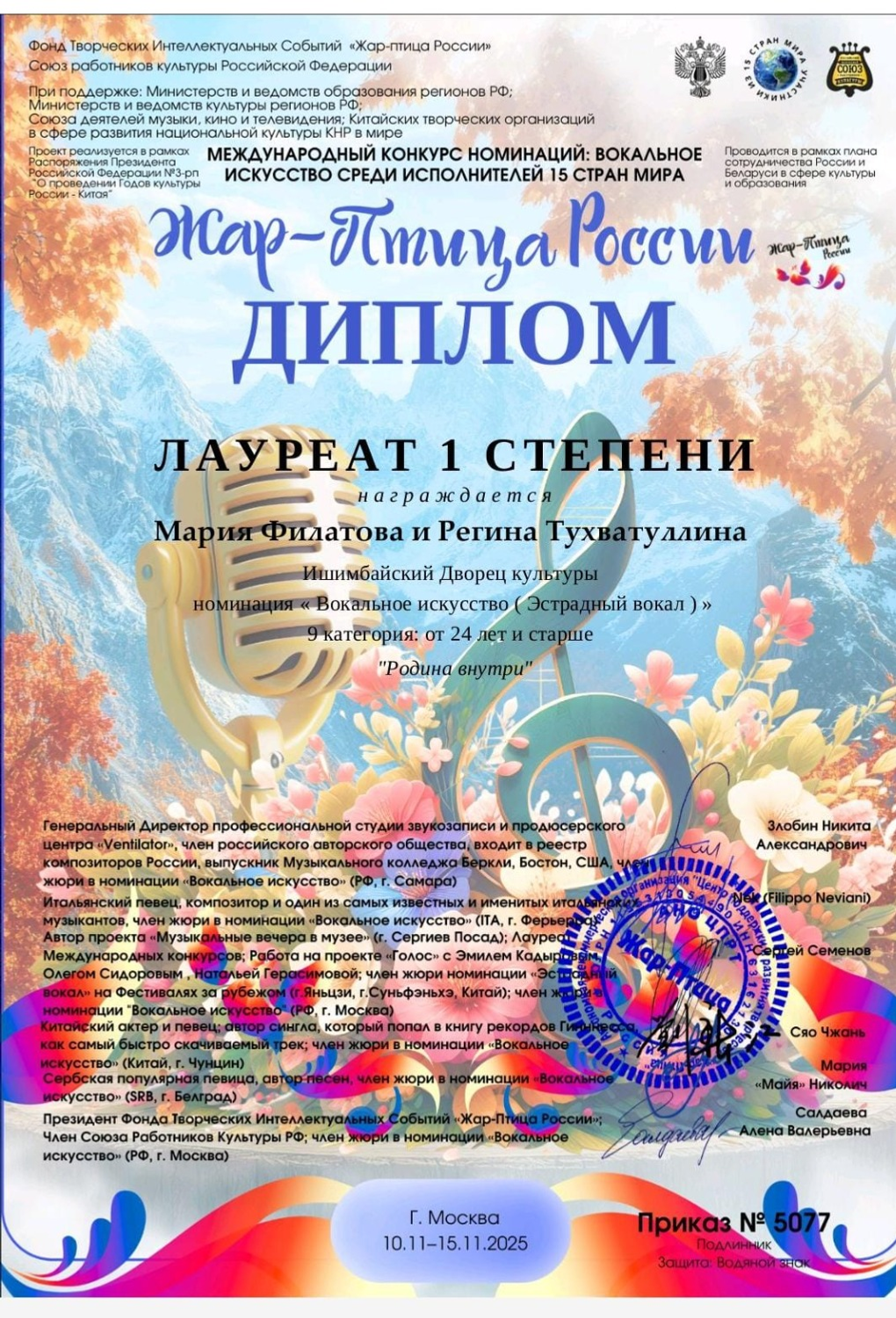 Конкурс «Жар-Птица России» – это крупная творческая площадка, объединяющая исполнителей из 15 стран мира. Участники проходят серьёзный отбор, а победа в нём считается значимым достижением для артистов.