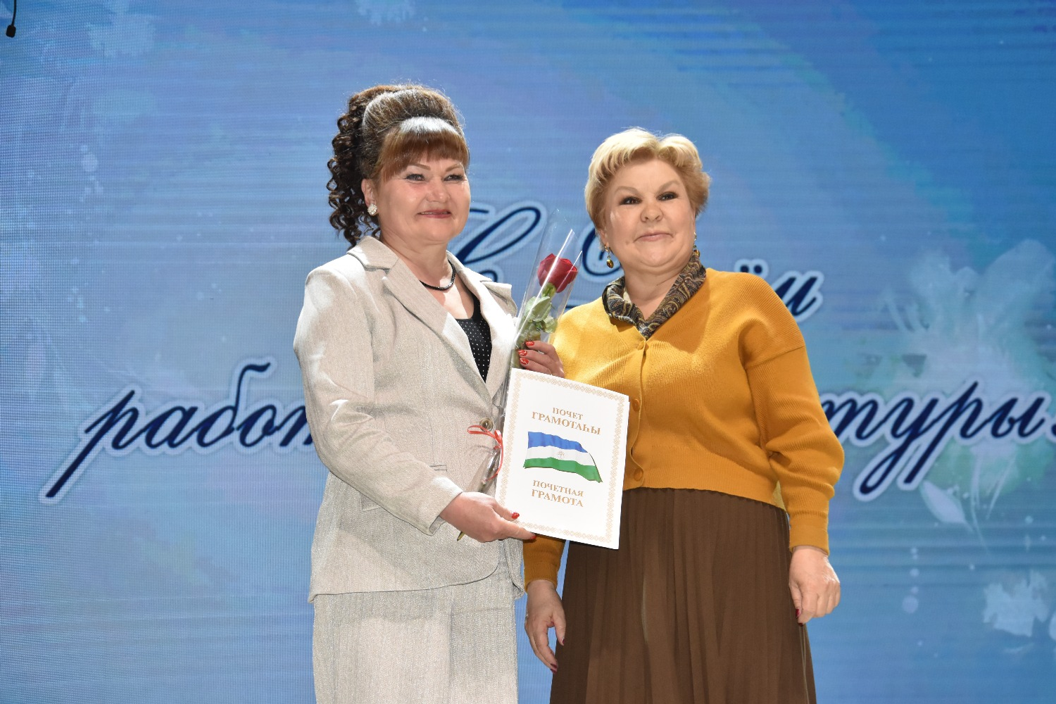 Наиболее отличившиеся сотрудники получили почётные грамоты и благодарственные письма Министерства культуры РБ, администрации района, отдела культуры и профсоюза. Особую признательность выразили ветеранам отрасли – заслуженным работникам культуры Марьям Газизрахмановне Султановой и Анвару Хурматовичу Нигматуллину.