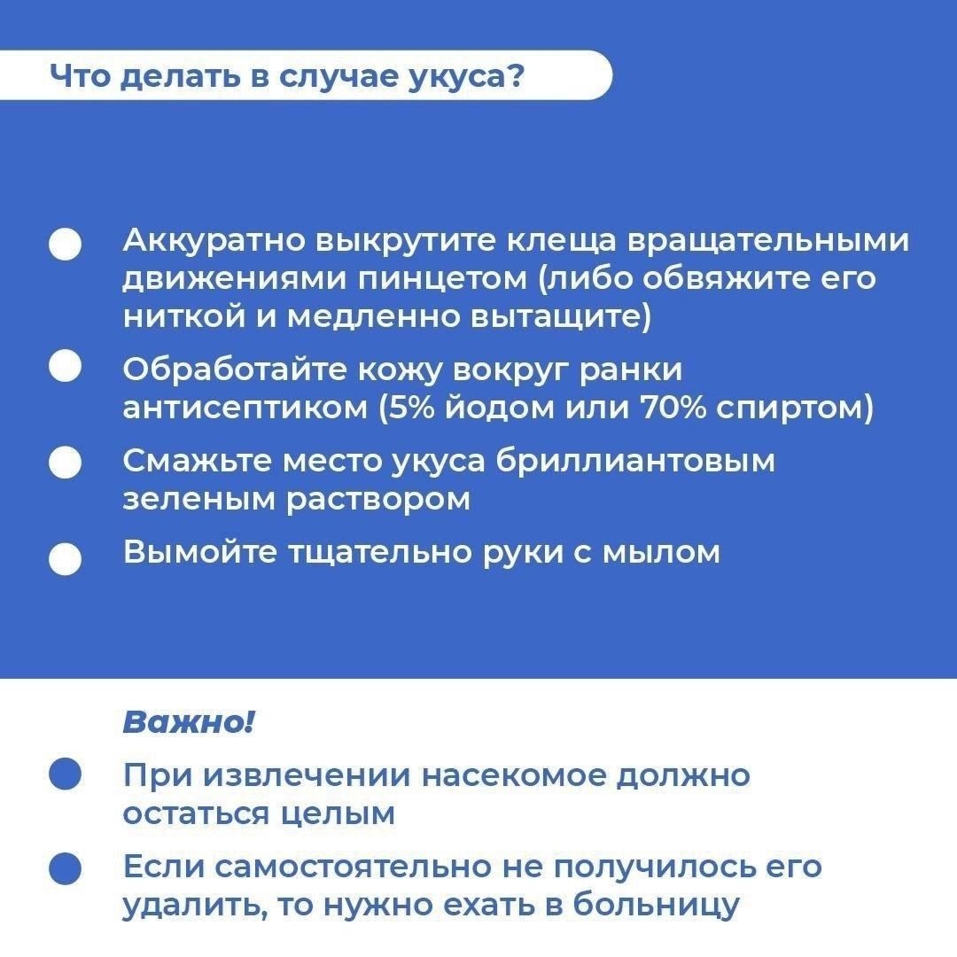 Игнорировать укус нельзя. Даже если место присоса выглядит безобидно, последствия могут быть необратимыми. Энцефалит, боррелиоз и другие инфекции, которые переносят клещи, – это не шутка. Поэтому, собираясь в лес или парк, надевайте закрытую одежду, используйте репелленты, а после прогулки тщательно осматривайте себя и детей. Весна прекрасна, но она требует осторожности.