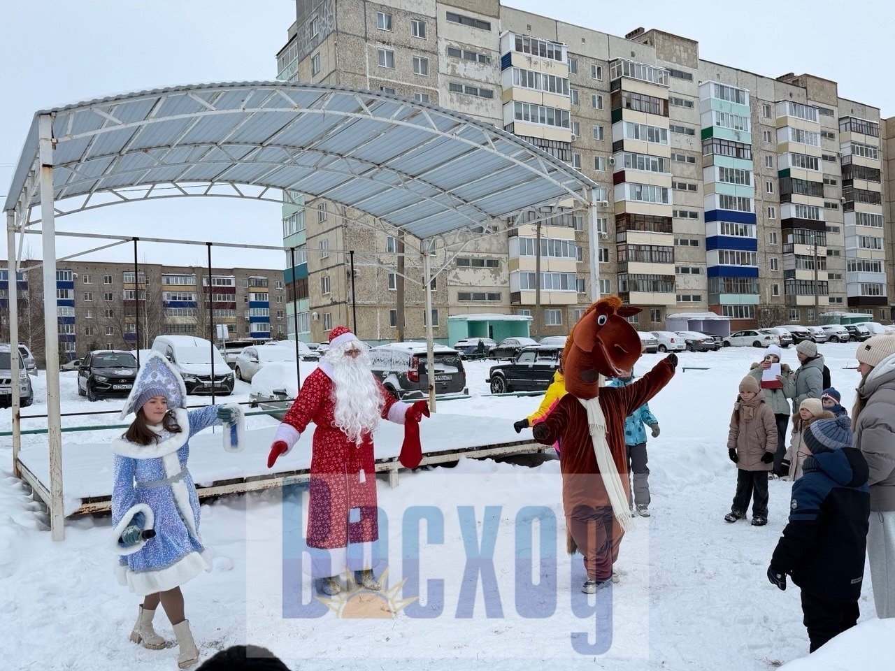 Горожане собрались в микрорайоне Южном, чтобы поиграть с Дедом Морозом и Снегурочкой, посмотреть концертные номера и попрощаться с новогодними каникулами. Сотрудники комитета по делам молодёжи и библиотечной системы подготовили для ребятни множество увлекательных игр. А главные волшебники зимы вовсю зажигали со зрителями – то хотели их заморозить, то согреть в весёлых танцах.